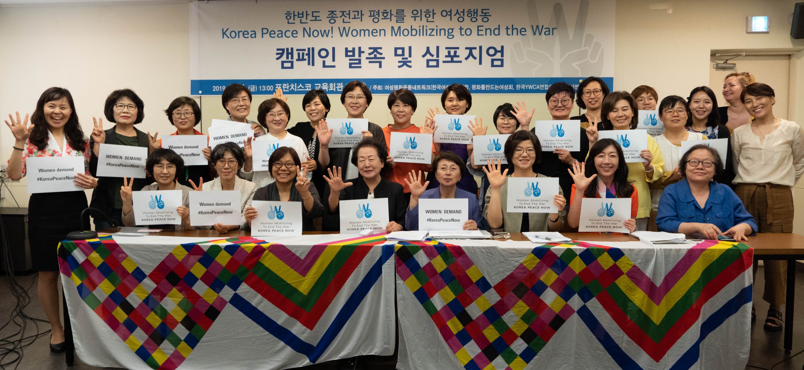 The Korean Women’s Movement for Peace is a coalition of four South Korean women’s organizations — Korean Women’s Association United, Women Making Peace, National YWCA of Korea and Korea Women’s Alliance — and launched the Korea Peace Now! campaign in South Korea on May 24, 2019, International Women’s Day for Peace and Disarmament. The goals of the Korea Peace Now! campaign — which also includes the Nobel Women’s Initiative, Women’s International League for Peace and Freedom, and Women Cross DMZ — include ending the 70-years-long Korean War with a peace agreement, and making sure women are included in the peace process.